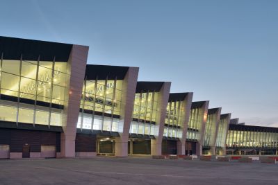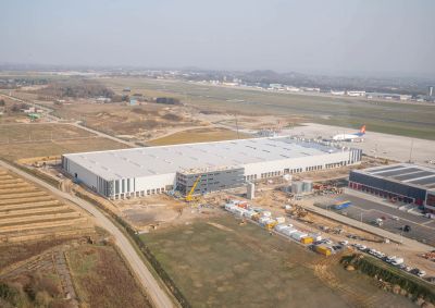 Impressionnant hangar aéroportuaire à la toiture ondoyante