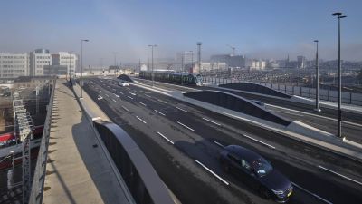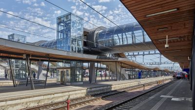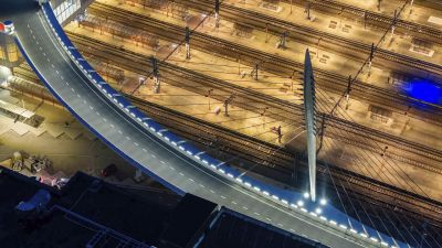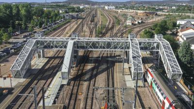 • Tekst: Dans le cadre du projet « Pôle d’échange multimodal de la gare d’Ettelbruck », la reconstruction du pont Patton permet de prioriser les bus, offrir un gabarit adéquat pour la mobilité douce mais également créer l’opportunité d’augmenter le gabarit ferroviaire pour être en conformité avec les nouvelles normes CFL. Le nouveau pont Patton est un ouvrage mixte en acier-béton à trois travées d’une longueur totale de 175 m. L’ouvrage est un caisson métallique fermé constitué d’augets droits liaisonnés à des diaphragmes espacés de 5 m. Le caisson est cintré longitudinalement et encastré au niveau des deux piles intermédiaires, il présente notamment un rayon de courbure de 120 m. En partie supérieure, le pont est composé de deux voies de circulation, une voie de service, une piste cyclable et une voie dédiée aux bus.