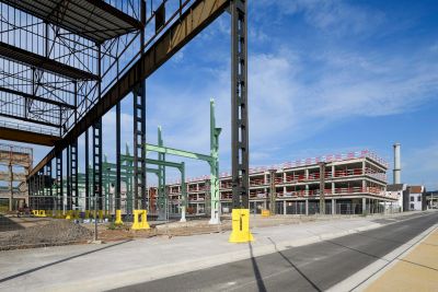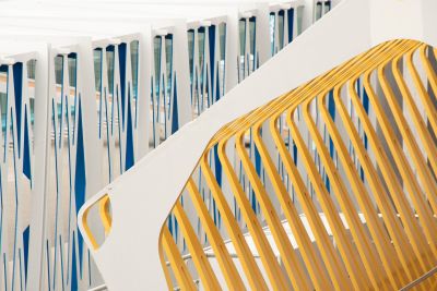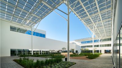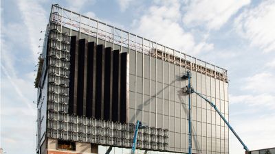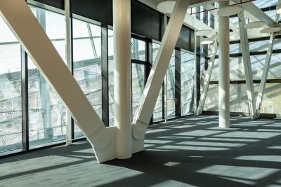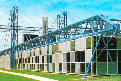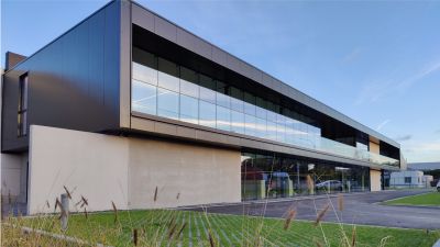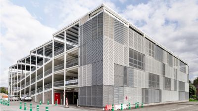 • Tekst: ORES, principal gestionnaire de réseaux de distribution en Wallonie, a confié la conception de son nouveau siège social de Gosselies – 17 000 m² – aux architectes d’archipelago et la réalisation du gros œuvre fermé et du parachèvement à l’entreprise générale Franki. Un bâtiment qui a des allures de paquebot mais donne en même temps une impression de légèreté, une apparente contradiction due essentiellement au métal employé tant dans la structure que dans l’habillage des façades et des espaces extérieurs.