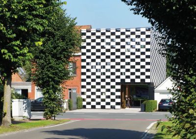 • Tekst: <p>Pour l&rsquo;emplacement de son nouveau bâtiment à Deinze, Heydays, une entreprise spécialisée dans le coaching a acheté un site le long d&rsquo;une route très fréquentée où se situent de nombreuses entreprises commerciales. Le nouveau volume fait office de zone tampon entre la rue très animée d&rsquo;un côté et la nature avec la Lys de l&rsquo;autre. </p><p>Une structure abstraite a été placée devant les façades, conférant au bâtiment son caractère et son apparence. D&rsquo;une part, cette structure est indépendante de la façade, mais elle y est également fixée à certains endroits et est composée de profilés tubulaires peints en noir. Des plaquettes blanches laquées ont été posées sur ces derniers. L&rsquo;ombre portée sur la façade arrière crée l&rsquo;impression d&rsquo;un jeu de blocs noirs et blancs qui se poursuit sur la façade latérale. </p><p>L&rsquo;acier permet de rendre la structure très fine. La construction simple crée une façade en couches qui, grâce à son caractère abstrait, confère une identité claire et lisible à l&rsquo;entreprise. </p>