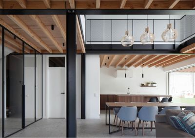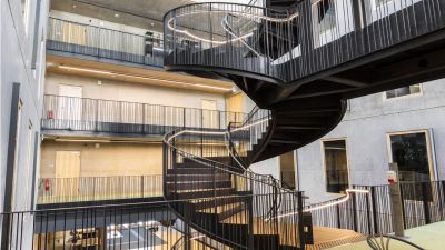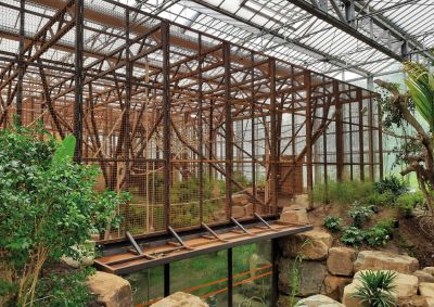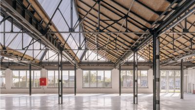 Une charpente métallique caractéristique crée une synergie entre l’ancien et le nouveau