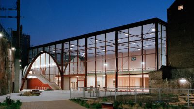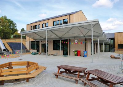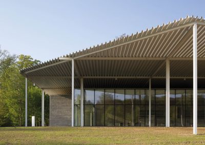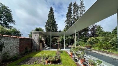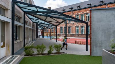 • Ondertitel: Un préau aérien comme une sculpture sur une toiture-vitrine