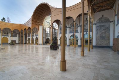 <p>Le hall d'exposition de 4480 m2 repose sur un piédestal en verre, attirant la place extérieure à l'intérieur comme une place couverte. Il s'agit d'un espace élevé dont les dimensions des baies sont de 15/30/15 m et qui repose à l'intérieur sur seulement six colonnes circulaires en béton de 1,20 m d'épaisseur. Six fermes secondaires et deux fermes primaires en acier transfèrent les charges des fermes secondaires aux six colonnes via une imposition architecturale articulée. L'entrée de la salle de conférence est dominée par un impressionnant porte-à-faux de 60x6 m qui assure une transition progressive entre le parvis et l'entrée.</p>