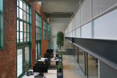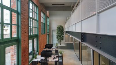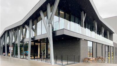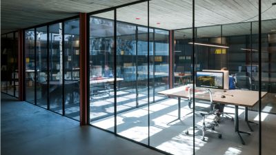 • Tekst: Quiconque quitte Herentals via la N13 et le pont sur le canal Albert ne peut ignorer The Cool Factory, dont l’impressionnante façade en verre du bâtiment principal domine fièrement tout ce qui l’entoure. Il s’agit de la nouvelle base opérationnelle d’un maître d’ouvrage ambitieux qui accorde une grande importance à la durabilité, à la fonctionnalité et à l’esthétique. Le Creative Cooling Group s’est en effet installé sur une ancienne base de l’armée britannique et a opté pour un juste milieu entre construction neuve et rénovation. Une partie des hangars militaires existants ont été réaménagés et complétés par un nouveau bâtiment de grande hauteur, qui a aussi reçu une toiture à deux versants avec charpente en acier. De subtils clins d’œil architecturaux à l’activité principale de l’entreprise complètent le tableau.