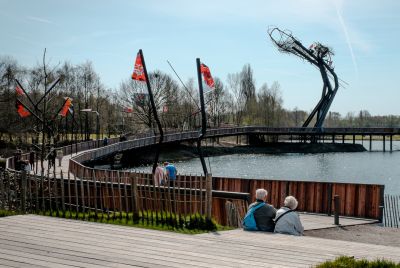 • Tekst: L’île du moulin sur la Lys à Harelbeke est un endroit unique pour les cyclistes et les randonneurs qui souhaitent faire une pause et profiter. Une plateforme d’observation a été placée sur la pointe de cette île au printemps 2021.