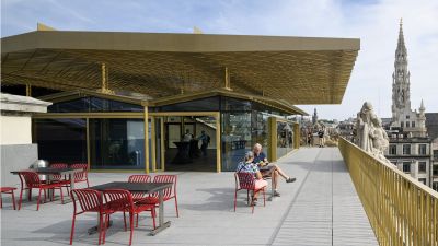 • Tekst: <p>Ce bâtiment, qui abritait la Bourse de Bruxelles, a été conçu par l’architecte Léon-Pierre Suys, et construit entre 1868 et 1873 en style néo-palladien. Il fut modernisé en 1930 par l’architecte François Malfait. Le projet consistait en sa réaffectation en «Belgian Beer World» comprenant également le Centre d’expérience Belge de la Bière, un centre de conférences, une brasserie panoramique sur le toit, un restaurant, une zone commerciale, une zone administrative et de services. </p><p>Les structures métalliques les plus remarquables de ce projet sont le Skybar, les escaliers des entrées latérales et les corbeilles avec occuli permettant une visibilité sur le site archéologique. Le nouveau Skybar en toiture est constituée d’une résille métallique légère supportée par des lames. Celles-ci s’appuient régulièrement sur des colonnes cruciformes traversant la boîte en verre. La hauteur relative de la structure ainsi que la faible prise au vent et à la neige, permettent des grandes portées et des porte-à-faux conséquents. Dans la partie centrale, la toiture vitrée du grand bar est suspendue à l’auvent. Les escaliers des entrées latérales sont composés d’une structure métallique très légère. Les garde-corps constitués de plats très fins supportent l’escalier de manière asymétrique sur un des 2 côtés. </p>
