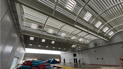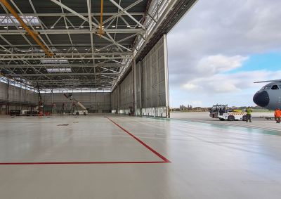 • Tekst: <p>La Défense est en train de renouveler sa flotte et son infrastructure aériennes. Les célèbres C-130 ont été progressivement remplacés par des avions de transport Airbus A400M, qui sont beaucoup plus grands que leurs prédécesseurs. C’est pourquoi un hangar de maintenance flambant neuf a été érigé à l’aéroport militaire de Melsbroek. D’une superficie de près de 14.000 m², il s’agit du plus grand hangar pour avions jamais construit par la Défense. De plus, le vaste volume laisse une marque architecturale frappante dans le paysage, grâce à une toiture ondoyante complexe, entièrement réalisée en acier.</p>
