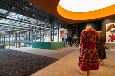 Tekst: Le bâtiment classé de la Machine-à-eau est conservé au sein d’un complexe ambitieux autour duquel deux extensions contemporaines complètent le bâtiment historique, l’englobant dans un ensemble porteur de sens de sa nouvelle fonction. L’acier se retrouve dans la passerelle de 16 m de long, une tôle pliée de 10 mm dans l’esprit des origamis, qui caractérise de nombreux éléments de la ferronnerie mais qui imprègne aussi les nouvelles façades qui donnent volontiers l’impression d’une surface pliée plutôt que d’une masse. Le mobilier aussi recourt abondamment à l’acier.