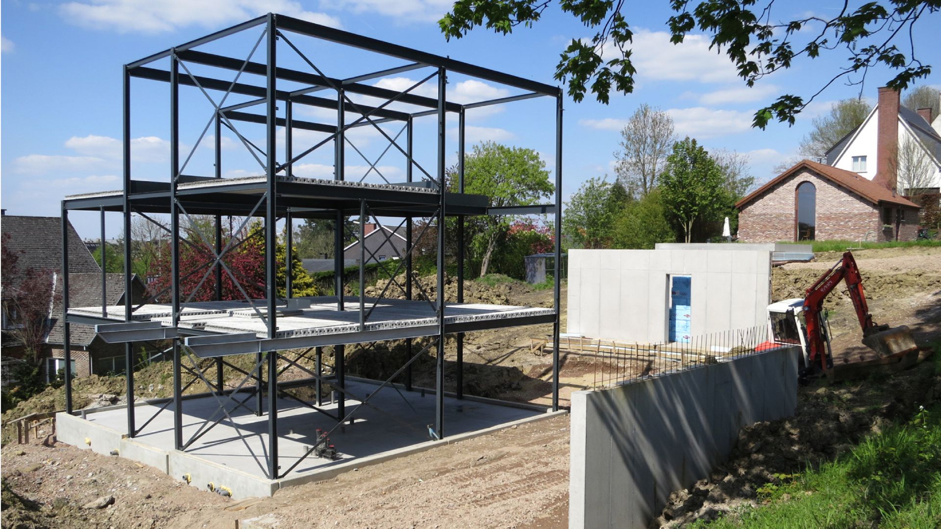 Maison à ossature métallique sur un terrain en pente raide