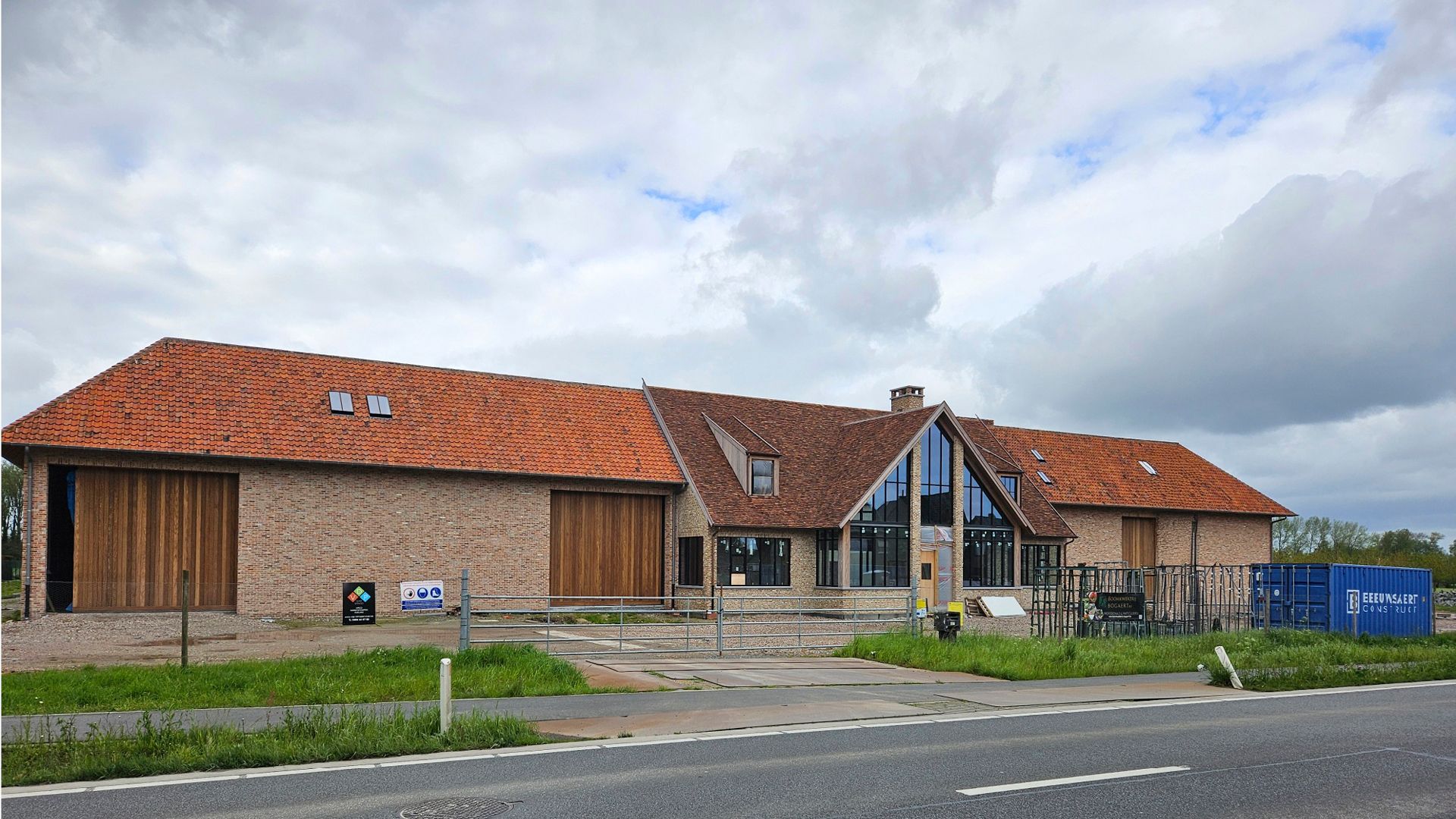 Deux grands hangars et une maison donnant sur la rue