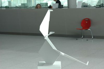 Les façades en polycarbonate à 4 chambres lui confèrent homogénéité et transparence tandis qu’une corniche périphérique en acier flotte comme une aile au-dessus du bâtiment. Cette corniche de 2 mètres de large souligne tout en finesse et en légèreté la forme organique du bâtiment. Elle est constituée d’une structure portante en acier revêtue de panneaux thermolaqués.</p>