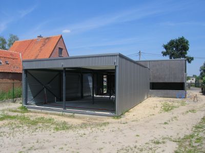 Tekst: <p>Deux frères, tous deux architectes ont bâti chacun leur habitation familiale, sur une grande parcelle qu'ils ont divisée. Chacun y a été de son projet avec une option commune pour l'ossature métallique et pour une architecture contemporaine.</p><p>La colonne vertébrale de la maison d’Arnaud est constituée par une poutre treillis de 8,5 m de long, formée de profilés minces en acier à froid. Noyée dans le plancher mixte acier-béton , elle rigidifie l'ensemble de la structure. La façade extérieur consiste en un panneau sandwich noir micro ondulé de 12 cm.</p><p>Le système constructif primaire de la maison de Johan est une ossature métallique formée de profils minces . Les avantages d’un tel système sont d’isoler les éléments porteurs par la projection de polyuréthane expansé (15 cm) et de diminuer le poids global du bâtiment. À l’étage, le couvrant rez a été conçu avec une dalle mixte acier-béton d’une épaisseur de 24 cm L'enveloppe combine un bardage en cassettes pour le car-port et le volume du séjour et des lames pour les autres parties. </p>