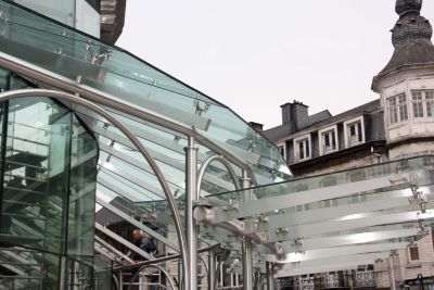 La fonction de la coupole en acier est à la fois esthétique et opérationnelle. Elle assure d’une part un apport de lumière suffisant, et doit d’autre part être démontable pour la mise en place ou l’enlèvement de l’escalator ou d’autres appareillages de grande taille. Exigence supplémentaire, la coupole devait être à même de résister aux efforts accidentels. Afin de satisfaire ces deux exigences contradictoires, la solution en acier a été choisie, celle-ci étant à la fois légère et résistante.</p>