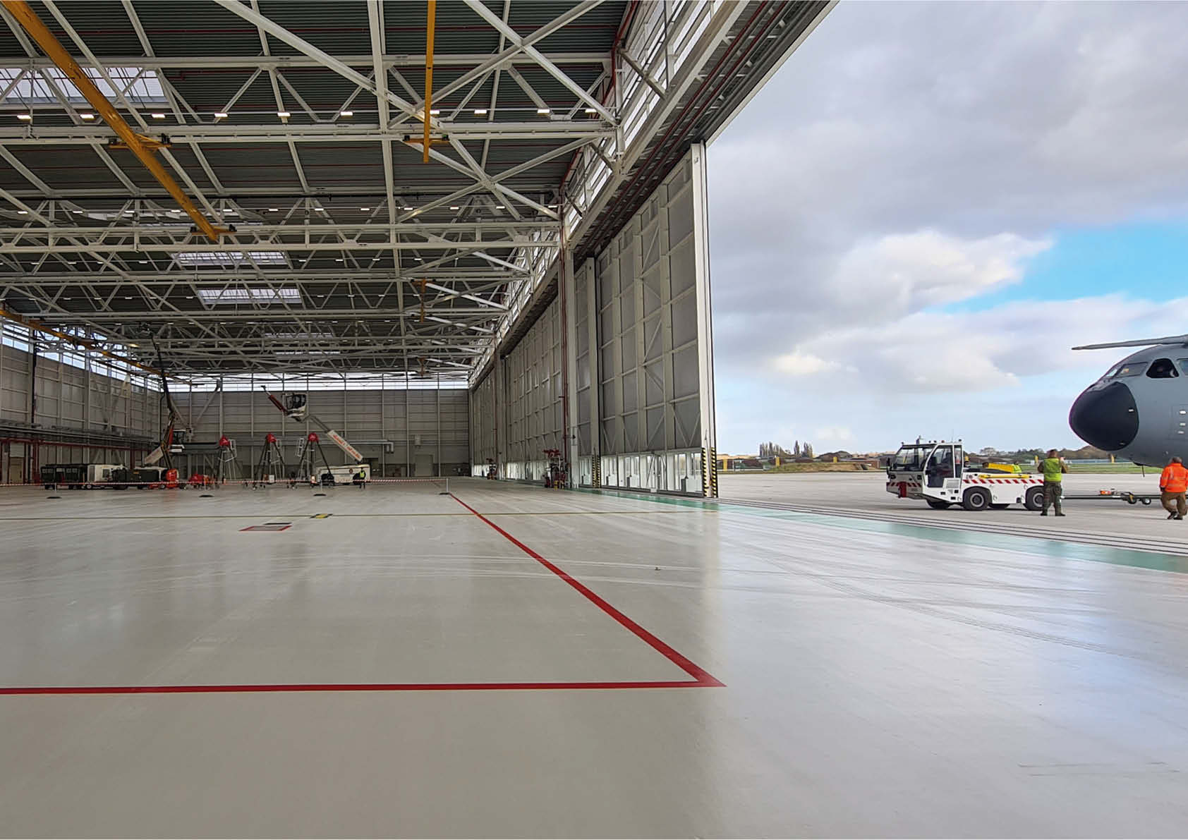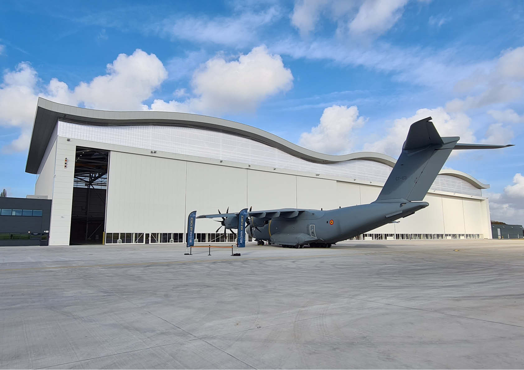 Het ministerie van Defensie is haar vliegtuigvloot en -infrastructuur volop aan het vernieuwen. Zo worden de welbekende C-130’s beetje bij beetje vervangen door Airbus A400M-transportvliegtuigen, die een heel stuk groter zijn dan hun voorgangers. Vandaar dat er op de militaire luchthaven van Melsbroek een gloednieuwe onderhoudsloods is opgetrokken, die een oppervlakte van bijna 14.000 m² bestrijkt – de grootste vliegtuighangar die Defensie ooit heeft laten bouwen.