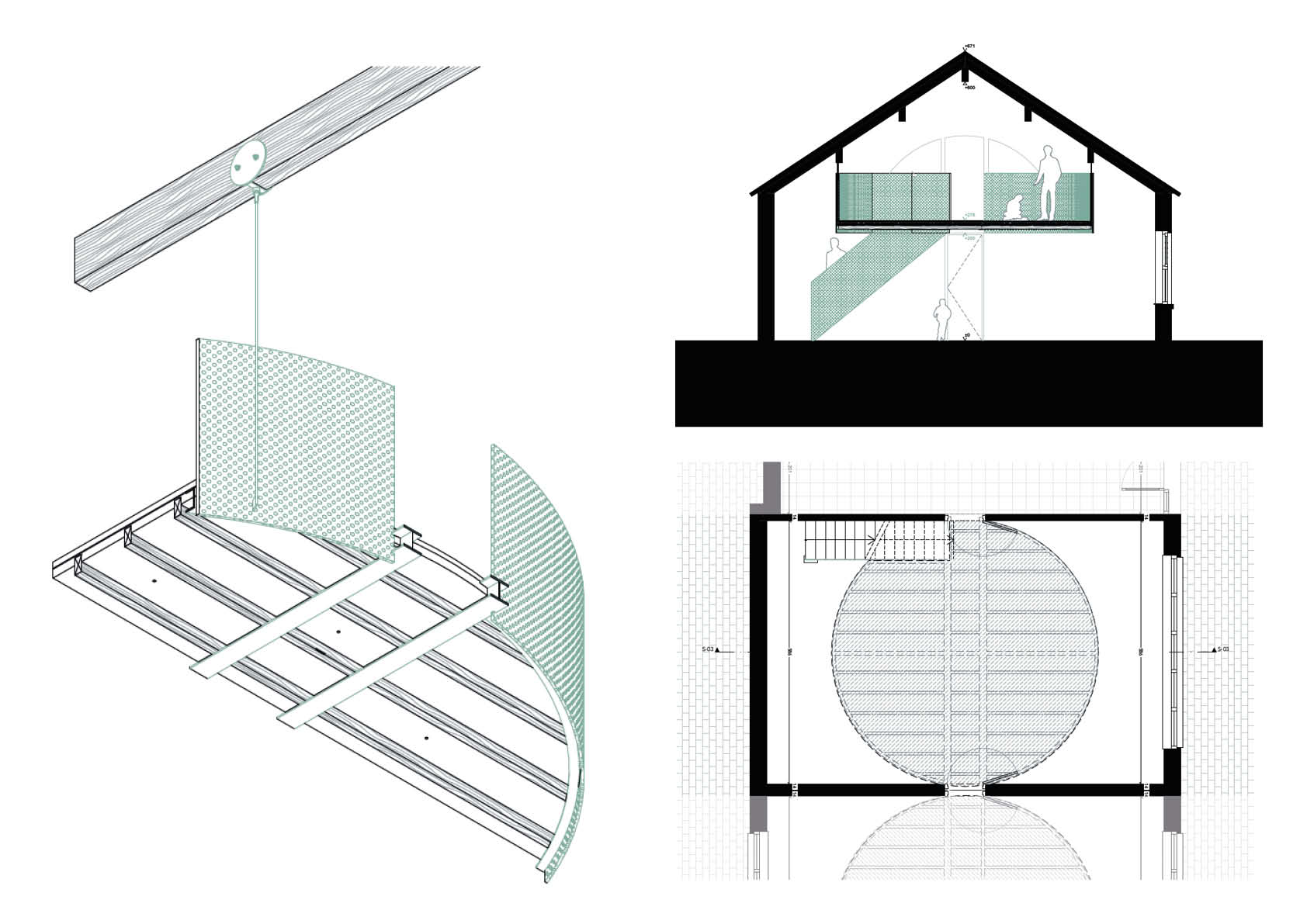 De bijbehorende trappen en kindvriendelijke balustrades zijn opgebouwd uit geperforeerde stalen platen. Zo ontstonden rustige, afgesloten cocons die toch voldoende licht doorlaten en doorzichten bieden naar de onderliggende klassen. De mezzanines zijn gelakt in een blauwgroene kleur die reeds aanwezig is in het gebouw. Een leuke extra is dat de geboute staalstructuren magnetisch zijn en dus ook kunnen fungeren als educatieve magneetborden.